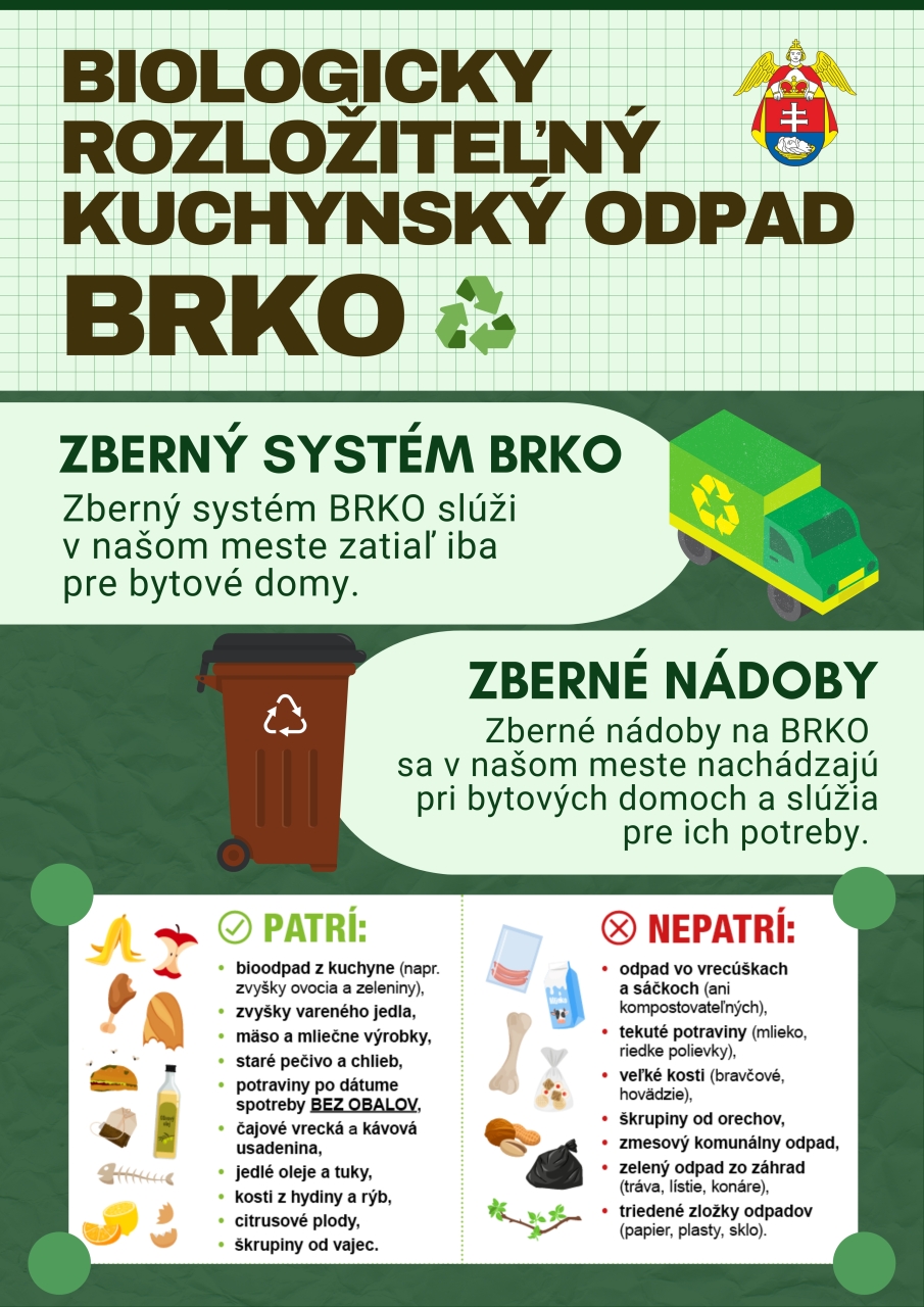 Vážení občania, Do systému separovaného zberu BRKO - biologický rozložiteľný odpad, sú zapojení len obyvatelia bytových domov v našom meste. Ďakujeme za porozumenie.