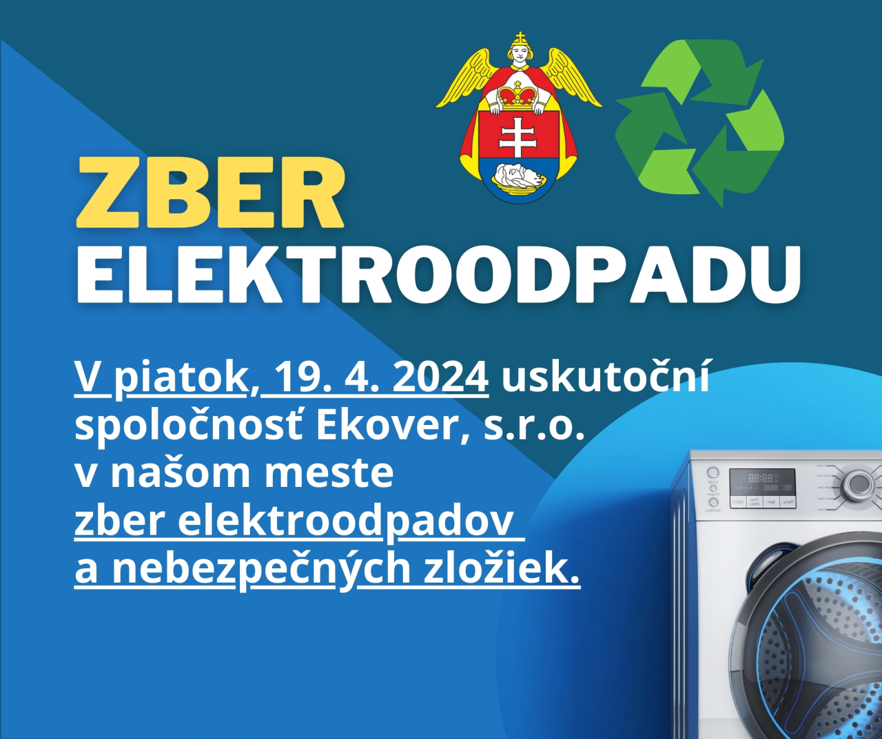 V piatok 19.4.2024 sa uskutoční zber elektroodpadu a nebezpečných zložiek.