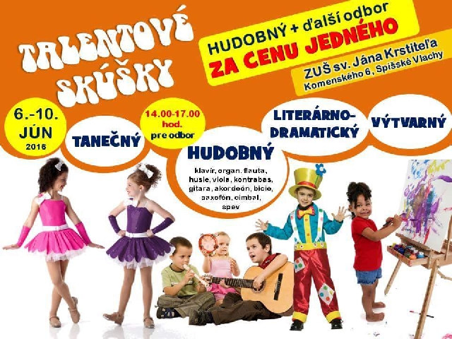 Talentové skúšky od 06.06.2016 - 10.06.2016 ZUŠ sv.J. Krstiteľa Spišské Vlachy