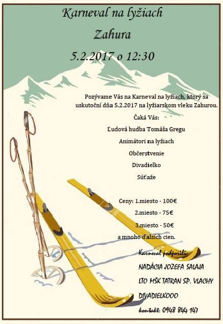 Karneval na lyžiach Zahurou pri lyžiarskom vleku dňa 05.02.2017 v nedeľu o 12.30 hod.